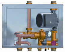 Comprende valvola a tre vie idraulica, scambiatore a 14 piastre e circolatore a 6 metri.